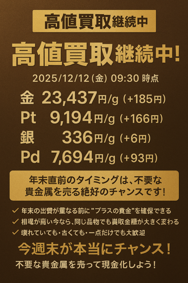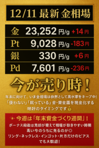 この年末直前のタイミングは、不要な貴金属を売る絶好のチャンスです!