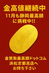 浜松市の皆さま、いつも「金買取 最高額ドットコム浜松志都呂店」をご利用いただき誠にありがとうございます。