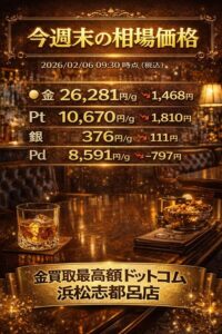 2026年2月6日 9:30時点、金・プラチナ相場は一時的な下落局面に入りました。 ですが――ここで動けるかどうかが、金額差になります。 ■ 今週末の最新相場(税込) 確かに「下がっています」。しかし、数年前と比べてくだ […]