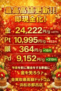 【最高高値更新】金の買取は今が売り時!即日現金化対応浜松志都呂店新着!!
